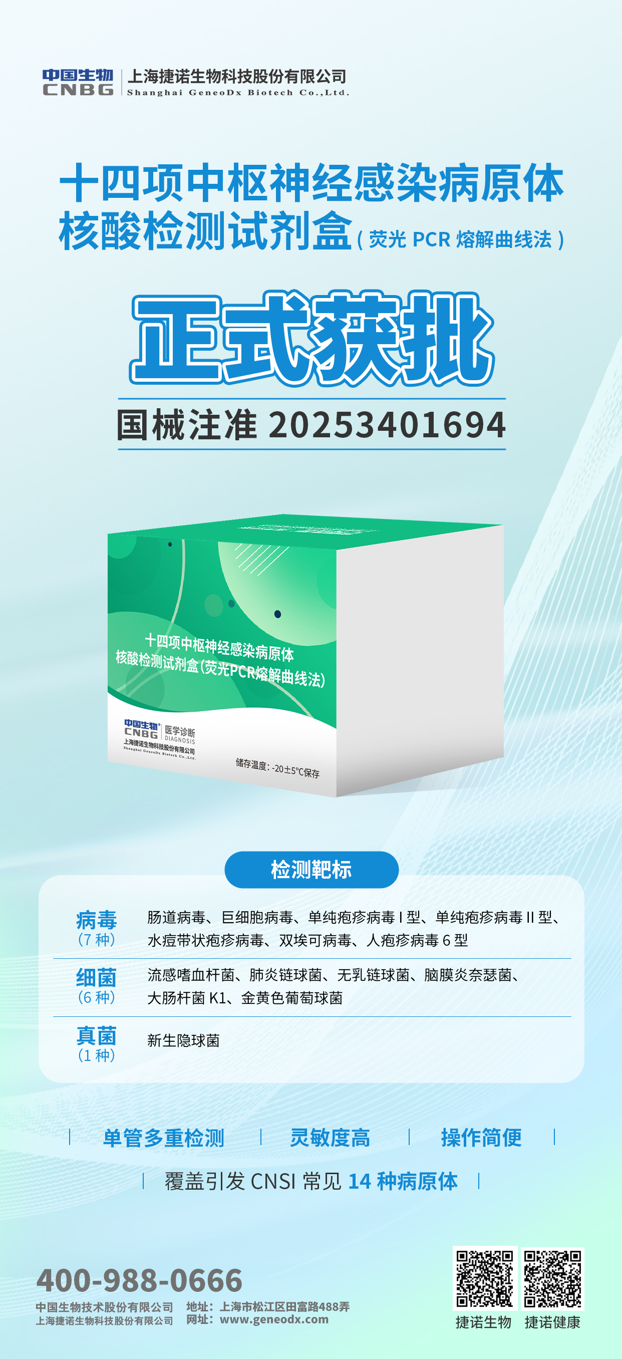 上海捷諾生物科技股份有限公司(以下簡稱“上海捷諾”)隸屬于中國醫藥集團有限公司(以下簡稱“國藥集團”)中國生物技術股份有限公司(以下簡稱“中國生物”),是中國生物旗下專業研發、生產、銷售國內外醫療器械和體外診斷試劑的企業。